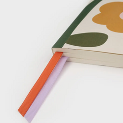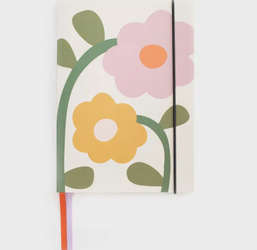 A5 notebook in our new Flower Power print with ruled pages. A contrast elastic closure and fun ribbon page markers will keep you organized.