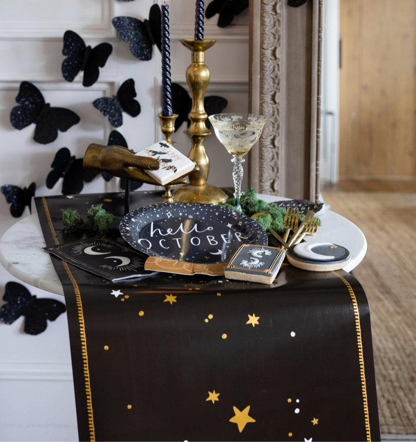 Enchant all that sits at your table this halloween with this stary table runner. Featuring shimmery stars, this table runner creates a mystifying tablescape that party goers will love at your next halloween gathering.