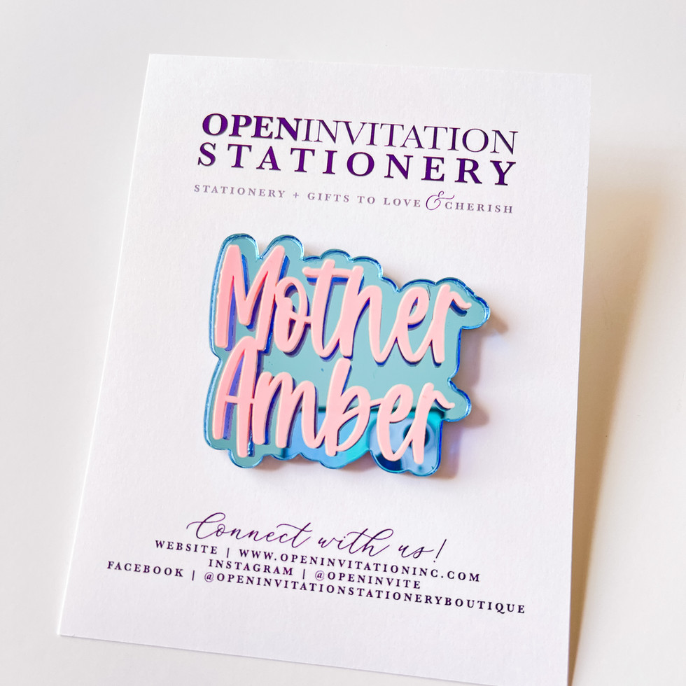 Please indicate whether pin should read "Mother" or "Mom". If not indicated Mother will be used.