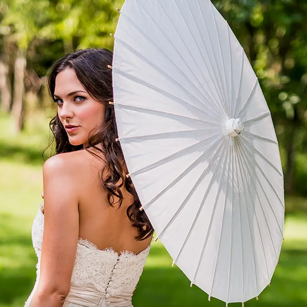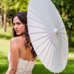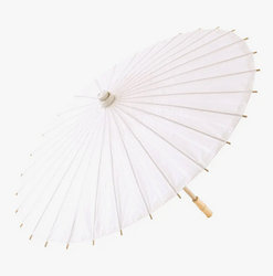 Fashioned in an oriental style, the white paper parasol is a fun and colorful decoration for any celebration. It’s paper canopy, wooden bamboo handle, and bamboo ribbing make the wedding parasol lightweight and easy to hang upside down. A unique, creative way to display the sun umbrella at your wedding reception or party venue and a beautiful decoration that’s relatively inexpensive.