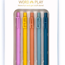 Teaching is a work of heart. Beautifully packaged word play pens have letter clips, soft touch barrels and black gel ink.Set of 5 pensGold foil stamped color-blocked box - 5.25" x 8"